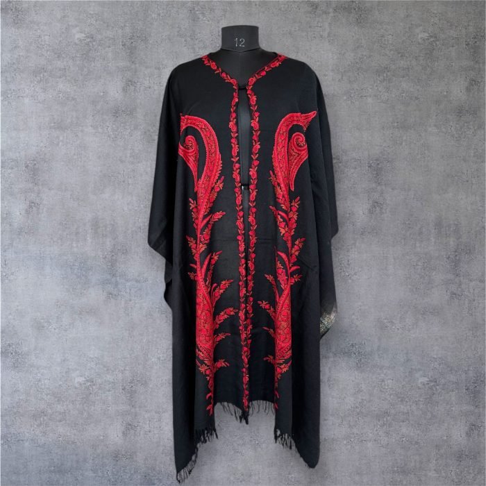 This exquisite cape shawl is a testament to the rich craftsmanship of Kashmir, blending timeless tradition with modern sophistication. The intricate hand-embroidery in vibrant colours hues showcases the unparalleled artistry of Kashmiri craftsmen, making each piece a unique work of art. Designed to drape effortlessly, this shawl elevates any outfit, whether for a special occasion or everyday luxury.